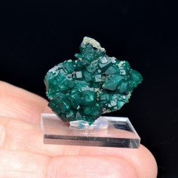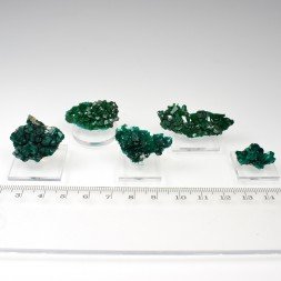 Lot of 5 dioptases from Congo (N'tola). Acrylic base...