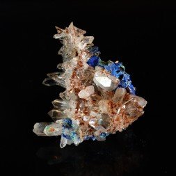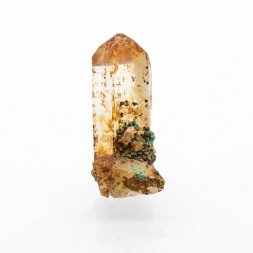 Small set of quartz crystals partially covered with iron oxide...