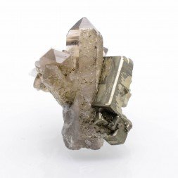 Aesthetic group of quartz, pyrite and chalcopyrite from Madan....