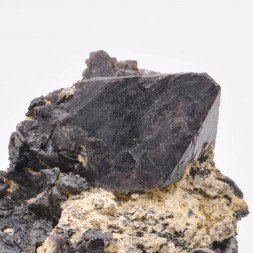 Black and shiny calcite crystals in rhombohedrons flattened to...