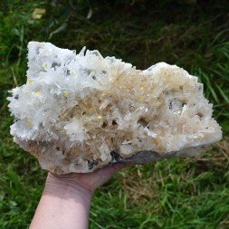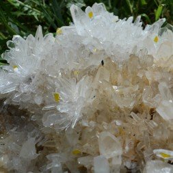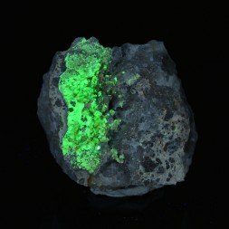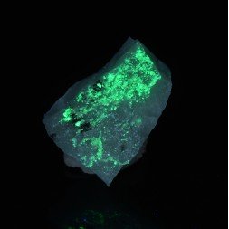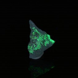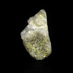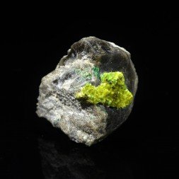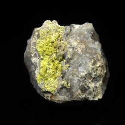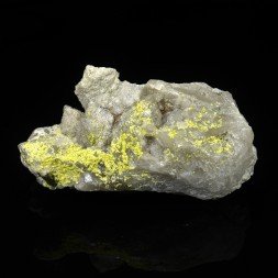 Small yellow autunite crystals on massive quartz. Piece from a...