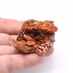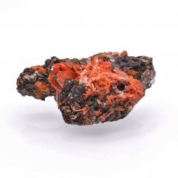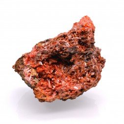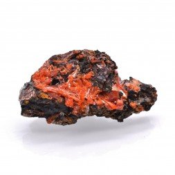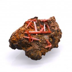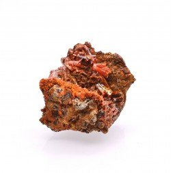 Bright red / orange crocoite crystals on a matrix of limonite...
