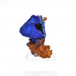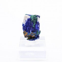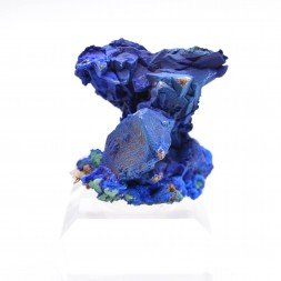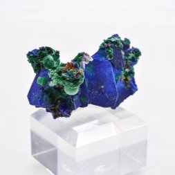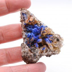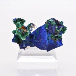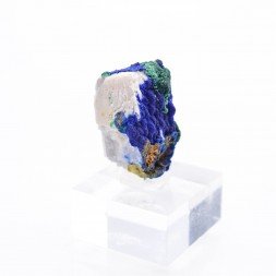Small quartz plate partially covered with azurite and...