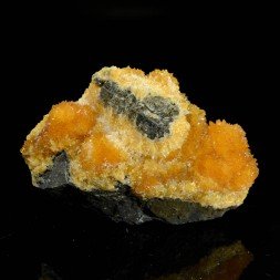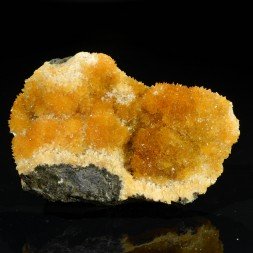 Small calcite scalenohedrons of a beautiful orange on basalt....
