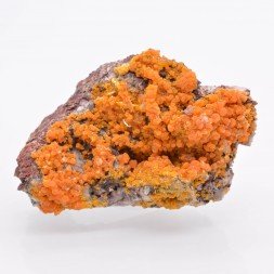 Mimetite in small orange spheres on gangue, accompanied in the...