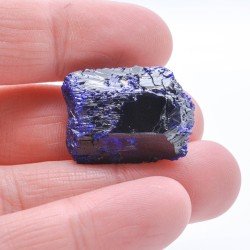 Aesthetic piece featuring a 3 cm long biterminated azurite crystal with rather shiny surfaces.