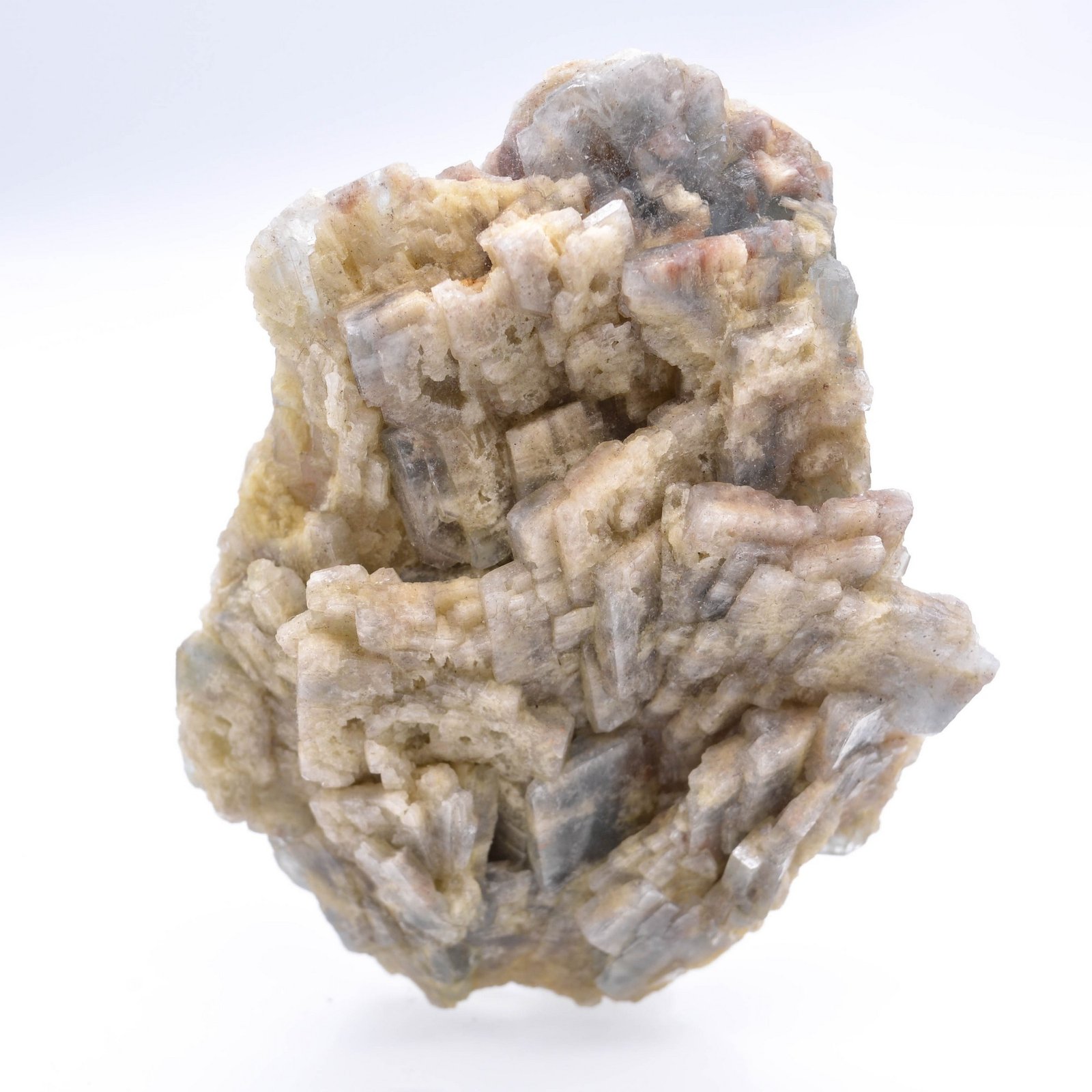 Group of barite crystals. Some crystals are blue, others show a white-yellow frost".