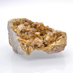Small crystals of honey-colored tabular barite, with a golden heart, very shiny, on a gangue composed of massive pinkish barite. Discovered in the Morvan along the river Cure without more precision. The facies could make one think of the locality of Pierre Perthuis in the Yonne.