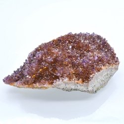 Small cluster of brilliant crystals of amethyst on orange...