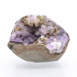 Geode of small crystals of amethyst accompanied by a little calcite in a gangue of basalt.