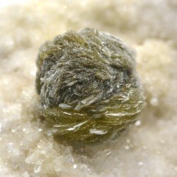 Group of brilliant pentagonite crystals in a 2 x 1.5 cm pompon with clearly visible internal radiated structure, on heulandite, from the Wagholi quarries in India (now closed). Dimensions of the whole piece :