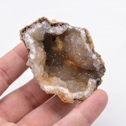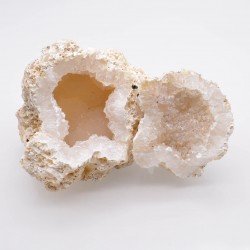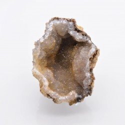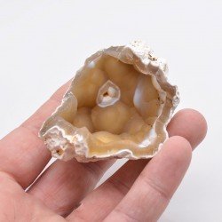 Complete geode of brilliant beige to bluish-white chalcedony...