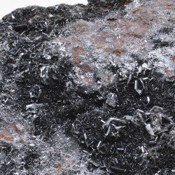 Small lamellar crystals of hematite, shiny, scattered on a...