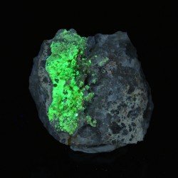Yellow/green autunite tabular micro crystals on massive...