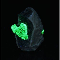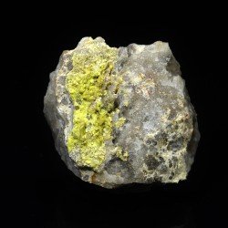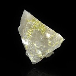 Yellow autunite tabular micro crystals on massive quartz. Piece from a small mine exploiting a pegmatite vein in the north of Portugal ! Strong reaction to UVS ! Radioactive mineral !