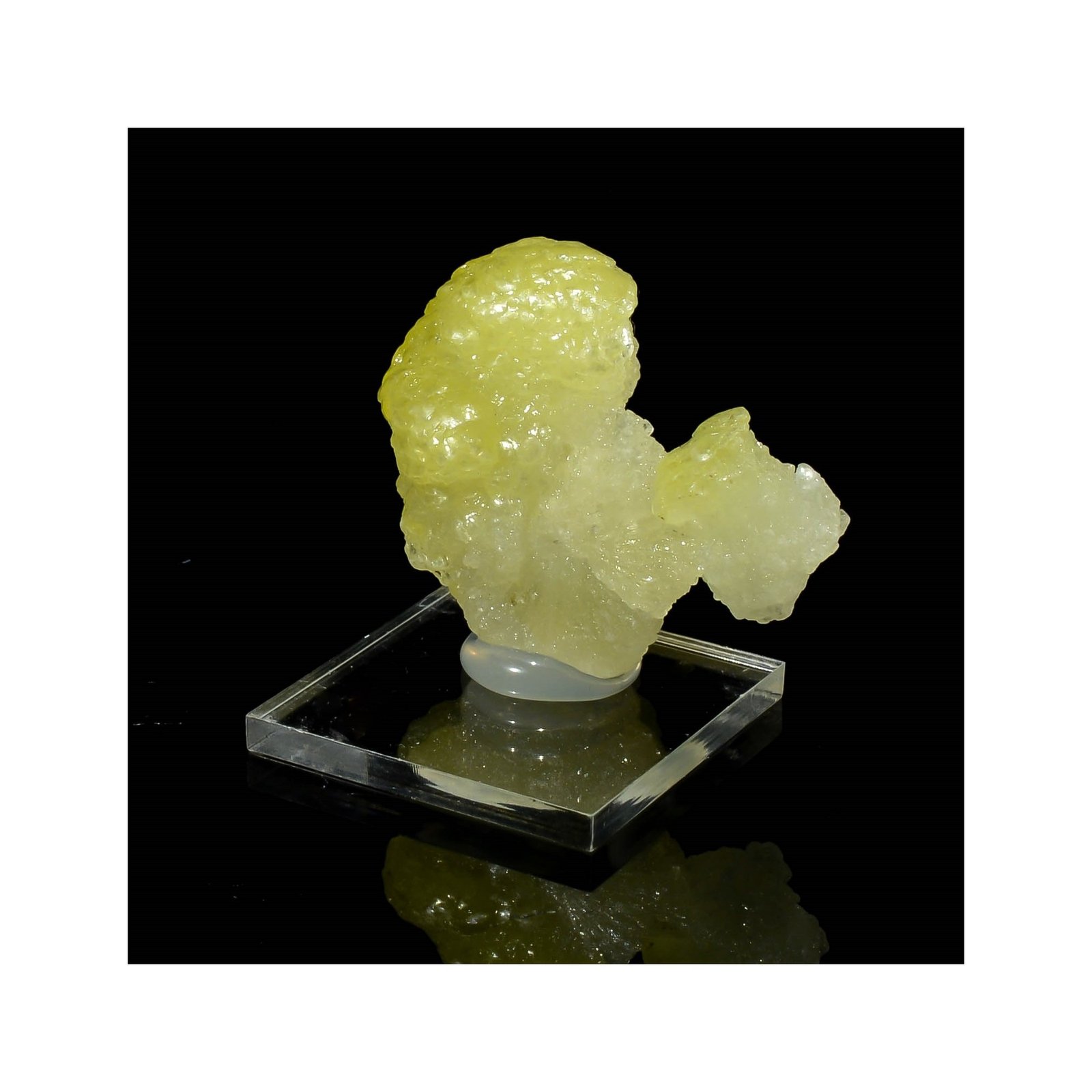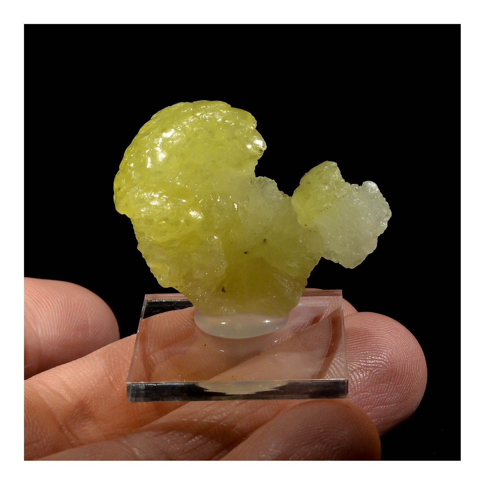 Brilliant brucite, of a beautiful lemon yellow. 3 x 2,5 x 0,5 cm.