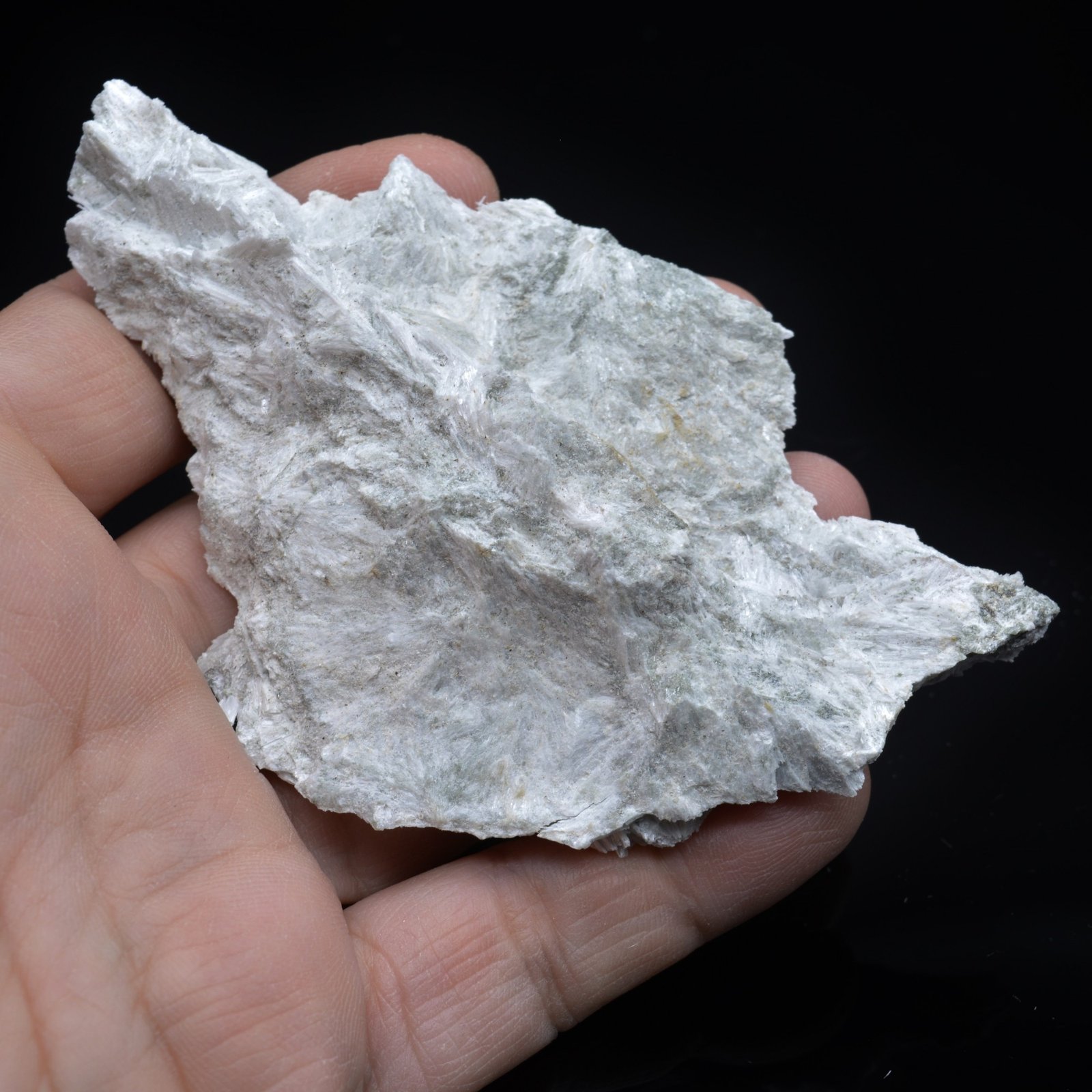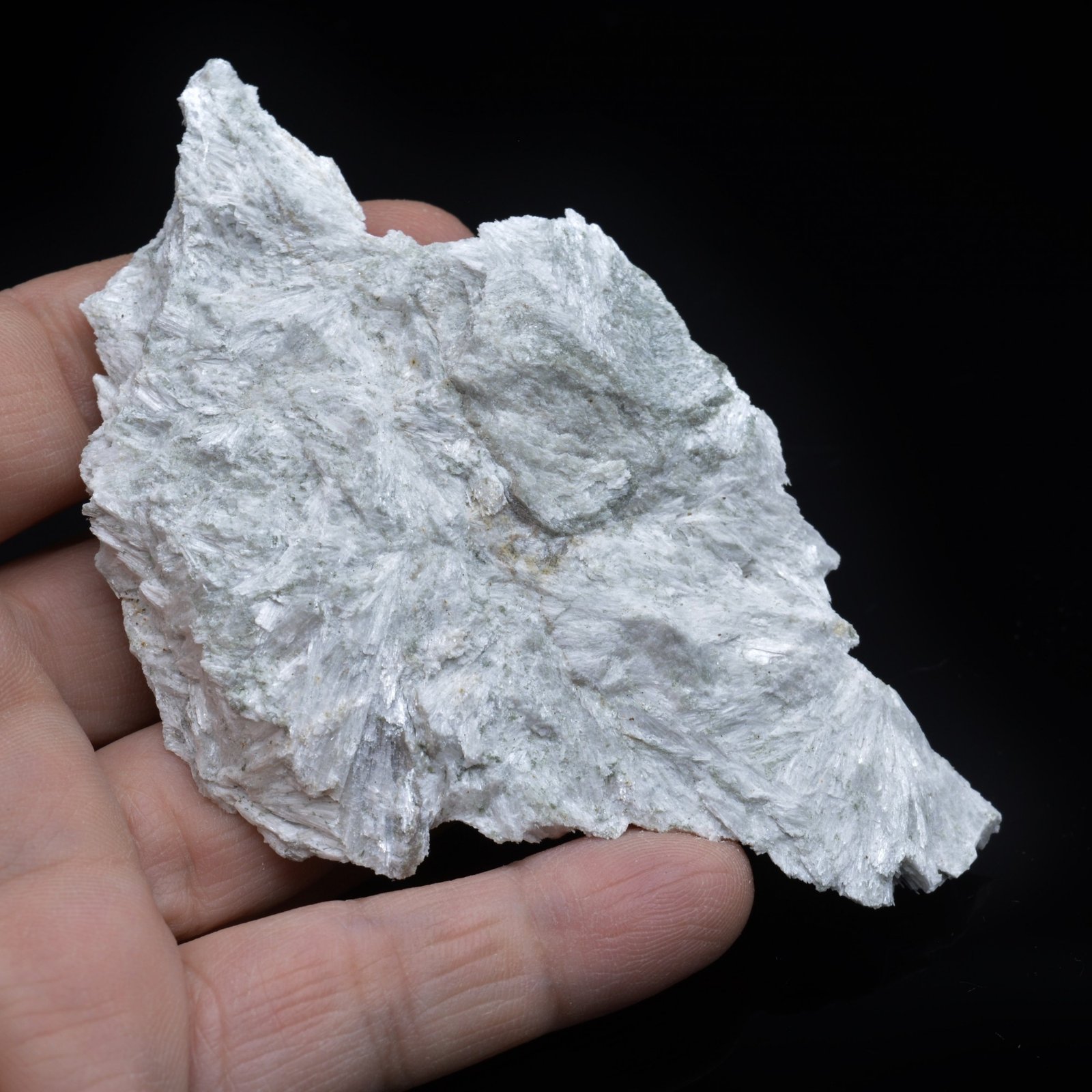 Aggregate of white fibro-lamellar wollastonite with a silky sheen, from a small occurrence in the vicinity of Rostrenen (Côtes d'Armor depertment), not listed. A more precise locality will be mentioned on the label.