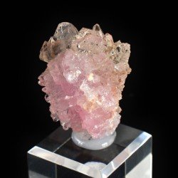 Rare rose quartz crystallized in small brilliant crystals, terminated by slightly larger colorless to smoky quartz.