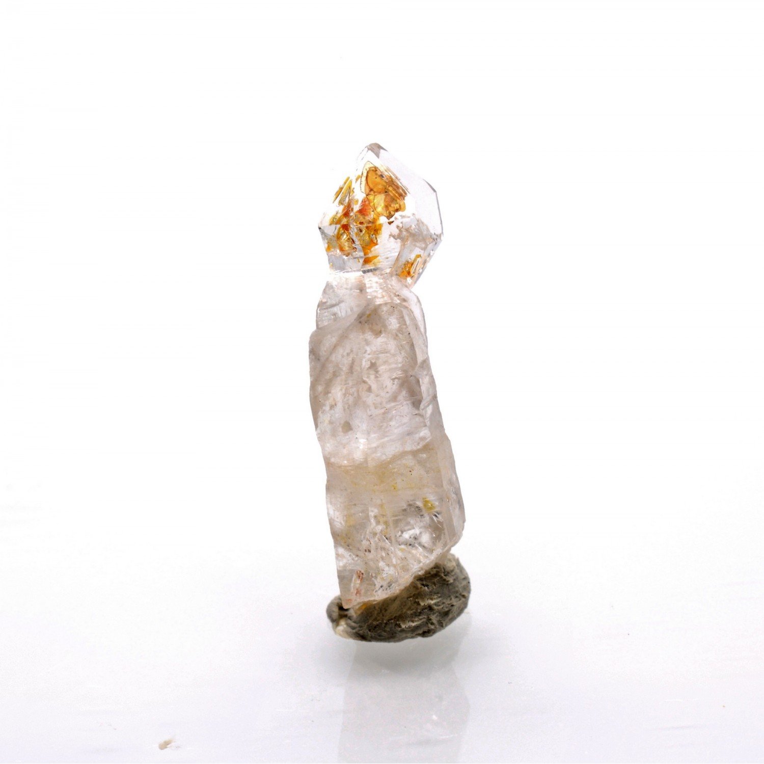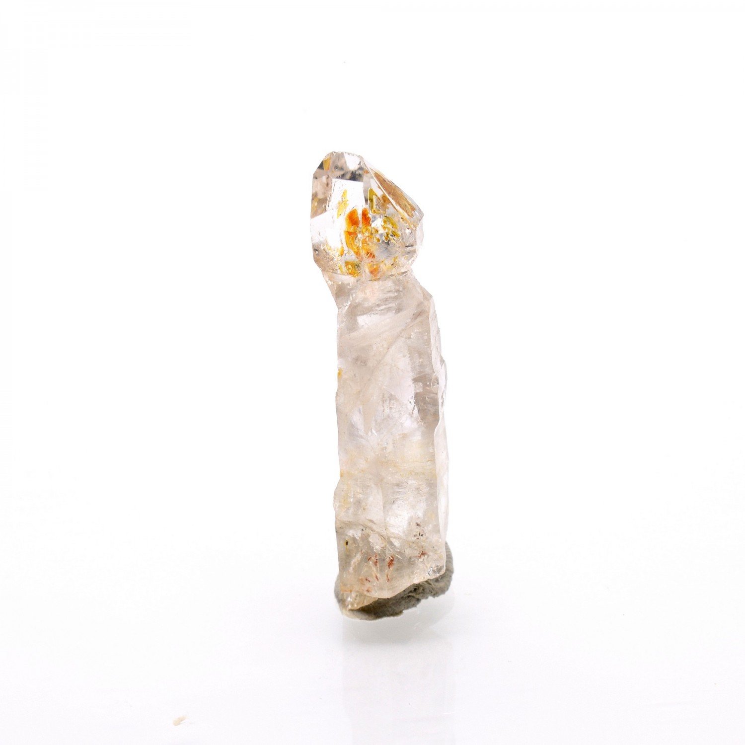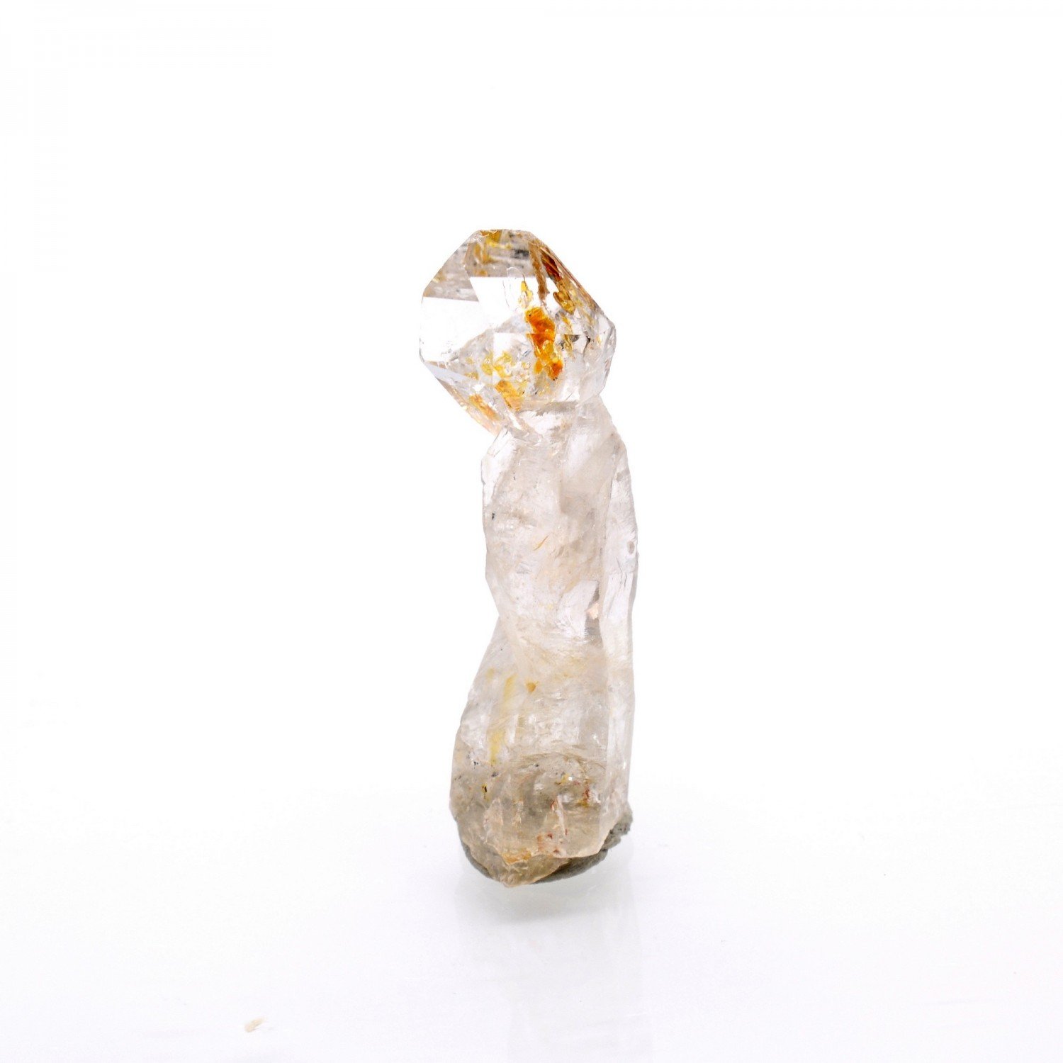 New in 2023: Madagascar quartz with hydrocarbon inclusions, notably petroleum, highly fluorescent at Uvs. The sceptered quartz shown here has a beautiful brilliance.