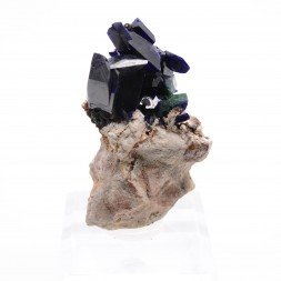Petit groupe de cristaux brillants d'azurite partiellement...