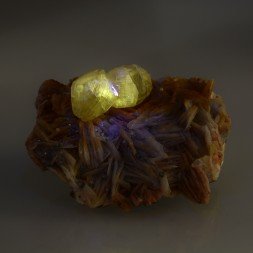Chrysobéryl en cristaux tabulaires jaunes maclés, brillants,...