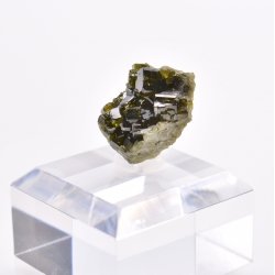 Groupe de petits cristaux de vésuvianite en prismes allongés...