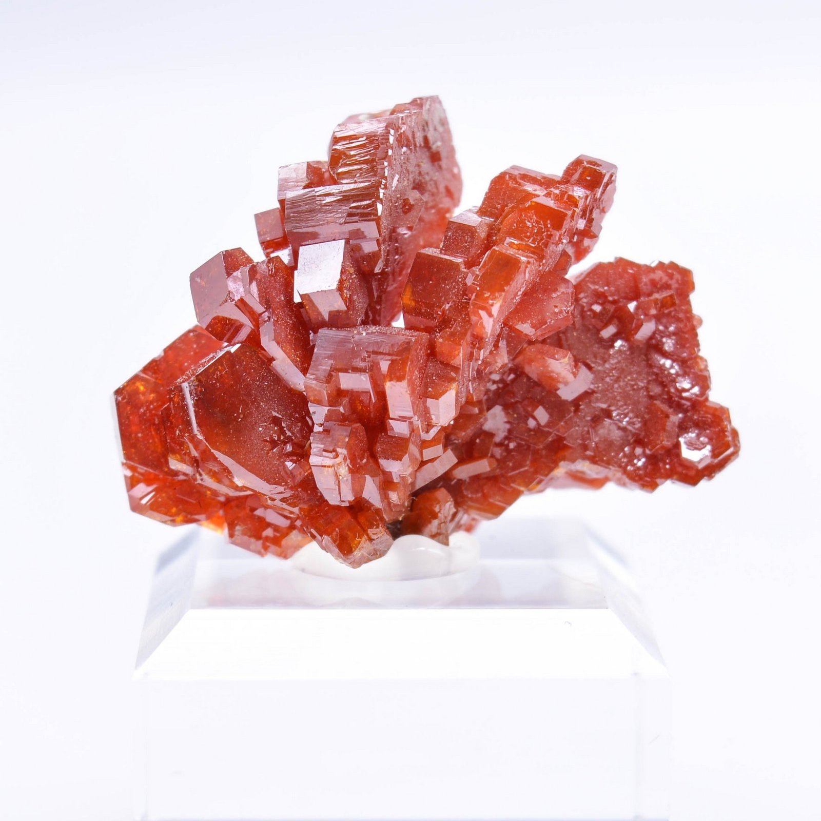Cristaux de vanadinite disposés en éventail d'un rouge vif et d'une superbe brillance.
