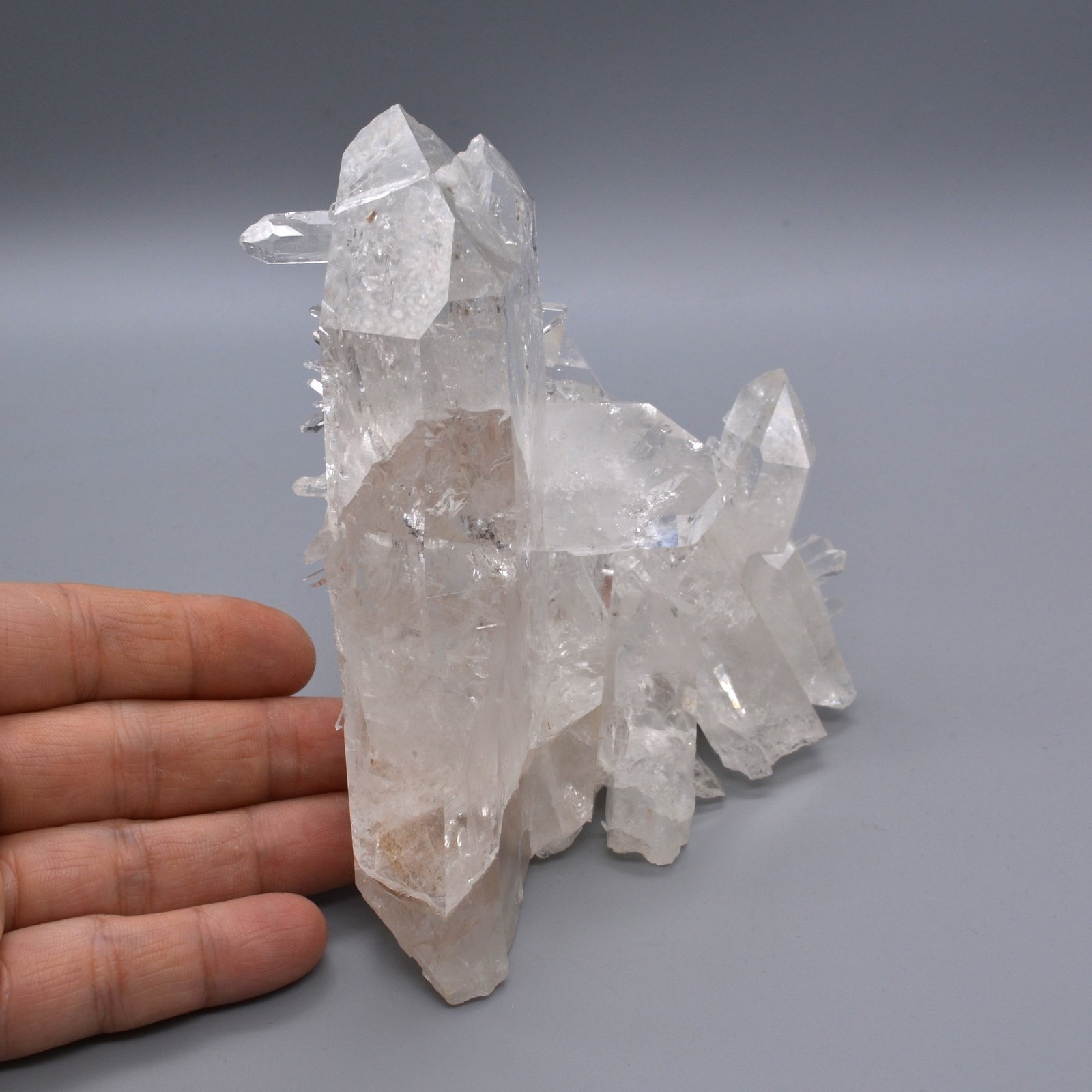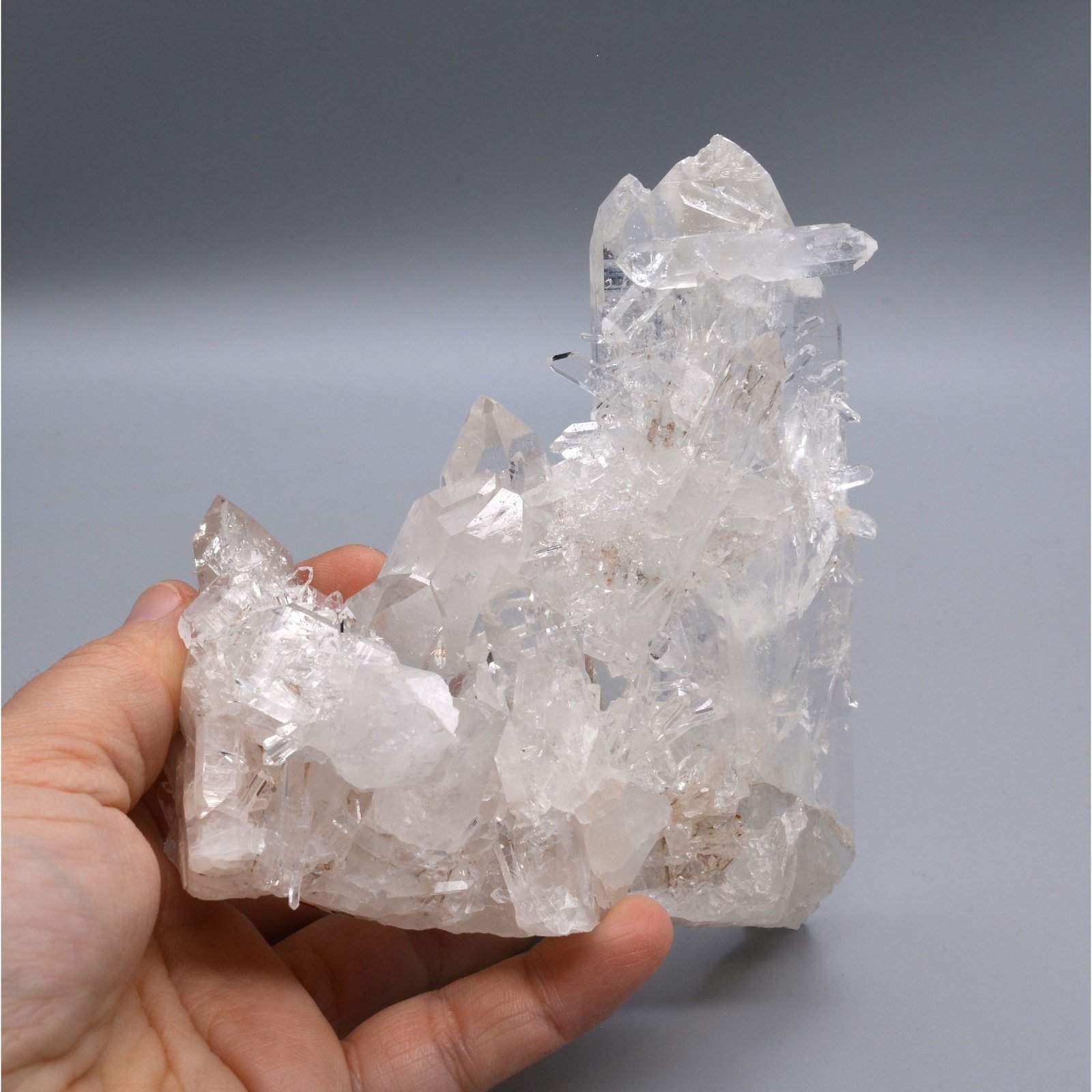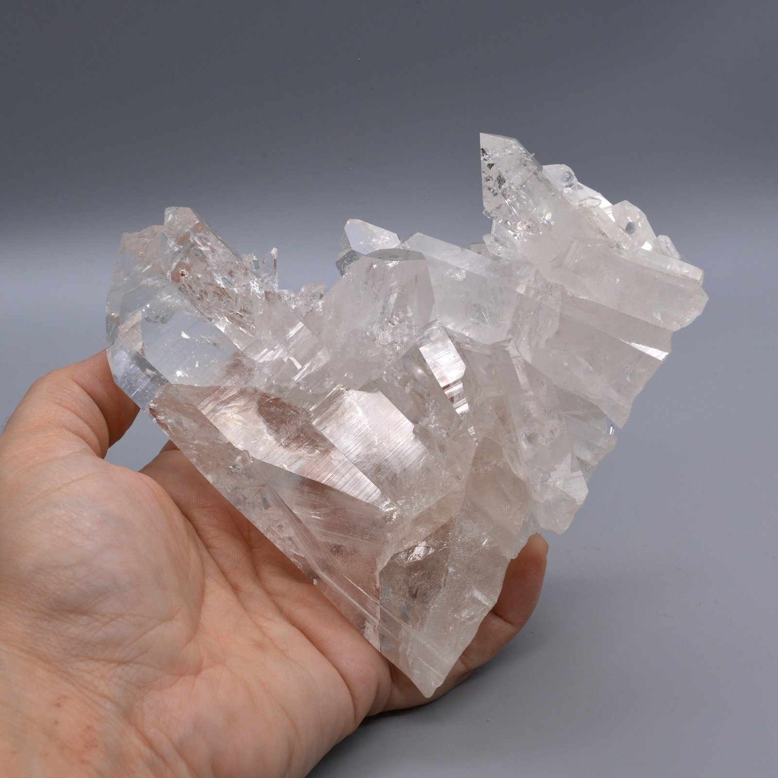 Groupe de pointes naturelles de quartz très limpide et brillant. Quelques défauts à déplorer.