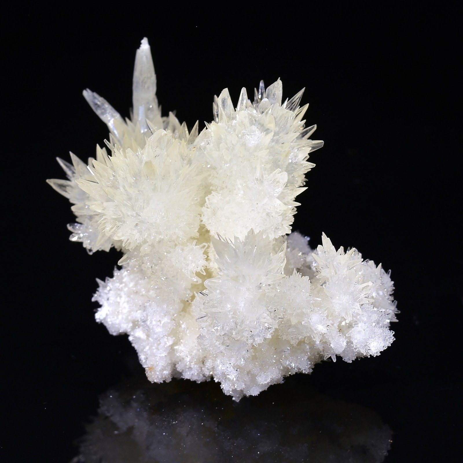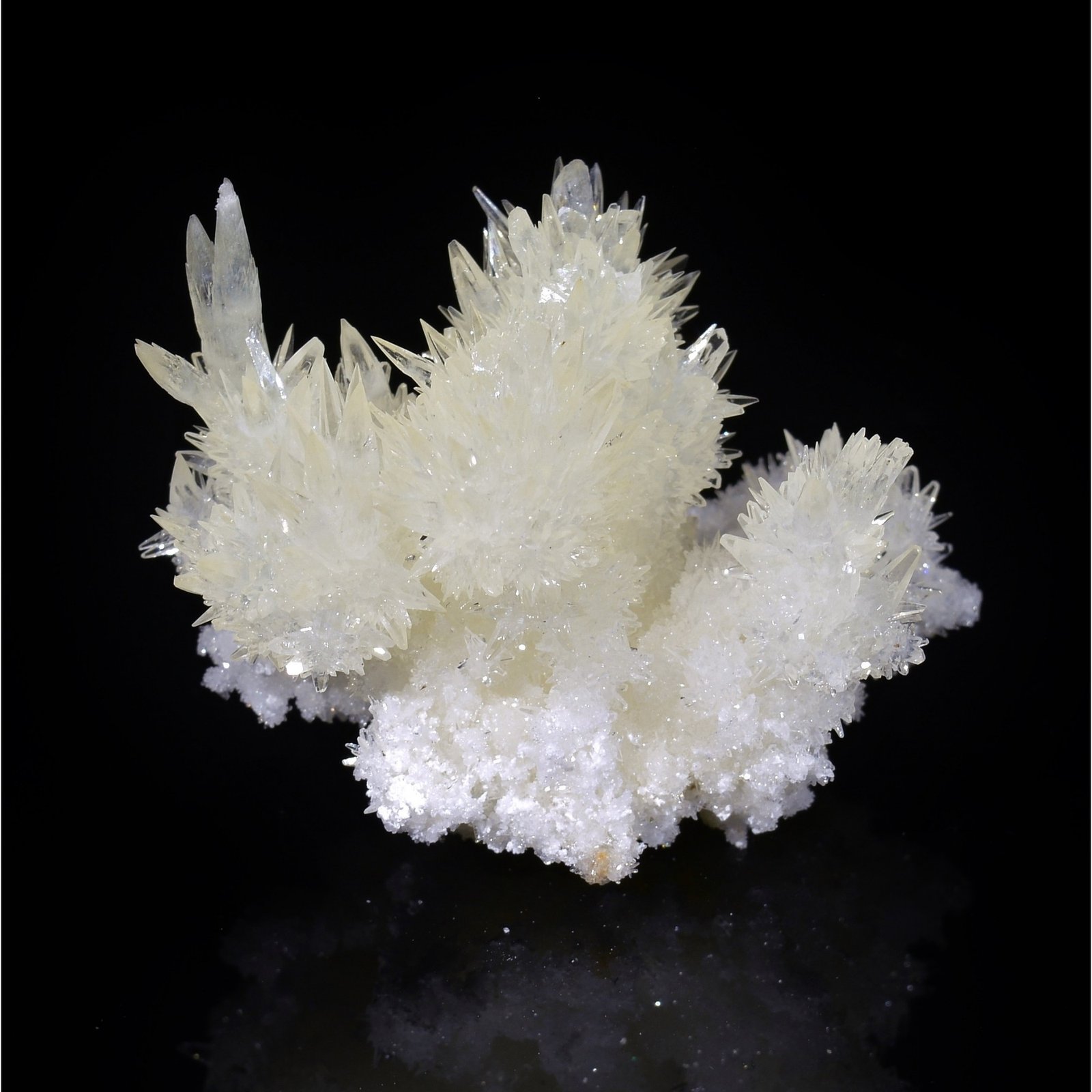 Nouvelle découverte (printemps 2022) d'une petite poche de calcites très délicates à la mine Qinglong (Dachang) en Chine. Cette pièce est flottante, d'une belle brillance. La calcite cristallisée en petits scalénoèdres très "aiguisés", est incolore à jaune très très pâle, et translucide au sommet. Les terminaisons sont en bon état au vu de la délicatesse de ce type de pièce L'envoi sera évidemment très soigné.