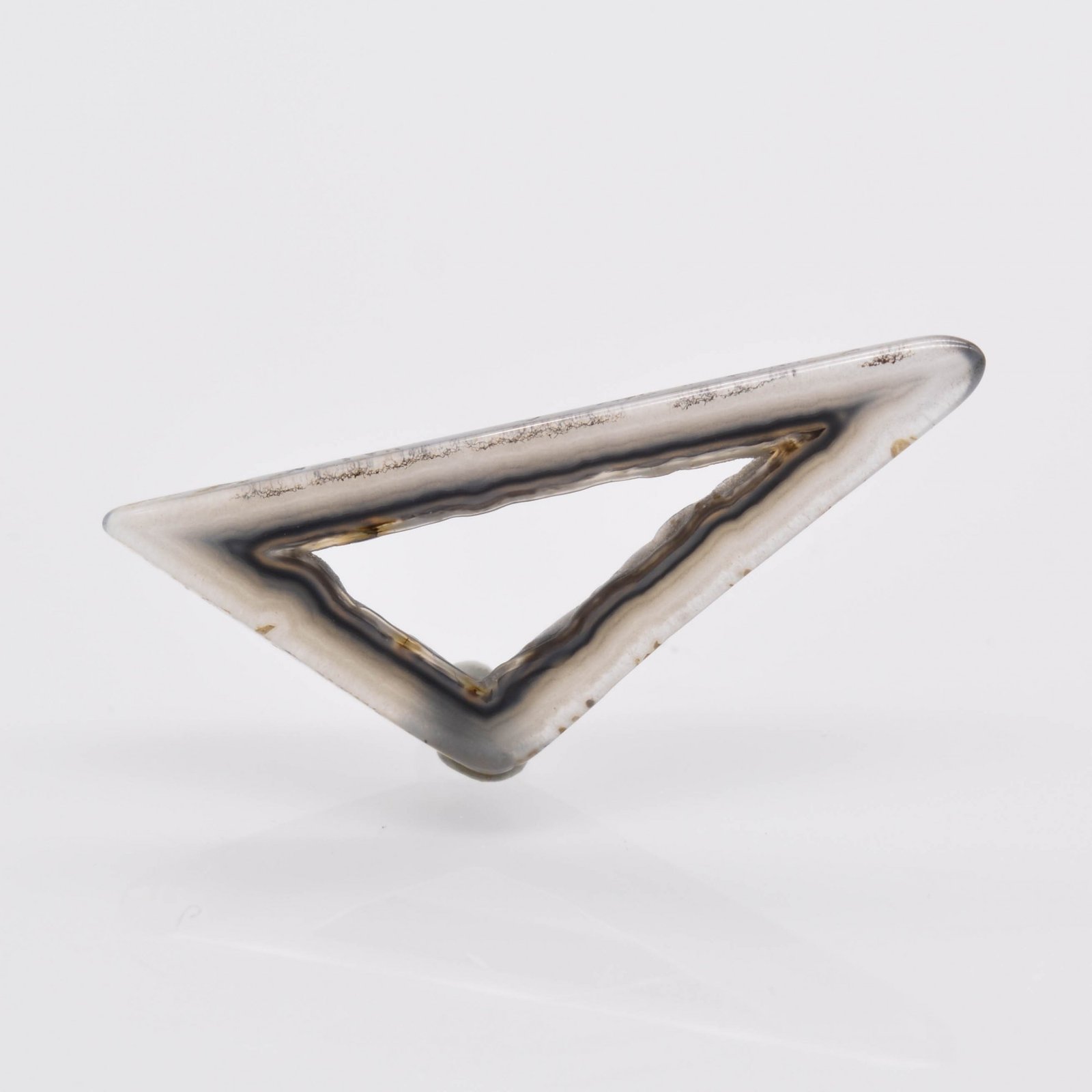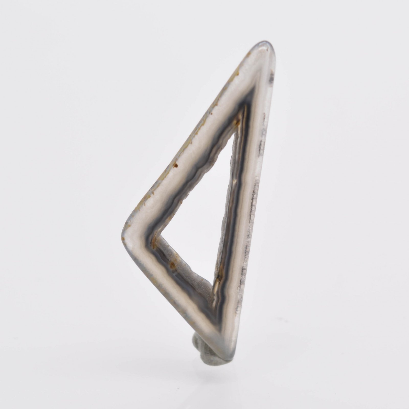 Tranche polie d’agate polyédrique, pouvant être appréciée comme telle pour la collection ou montée en pendentif. Les agates polyédriques ont été découvertes dans les années 1970 dans l’État de Paraíba au Brésil. Elles se sont formées par remplissage complet ou partiel de cavités de formes polyédriques, interprétées comme étant l'espace présent entre d’anciens cristaux non déterminés mais souvent supposés comme étant de la calcite (voir Le Règne Minéral n°163).
