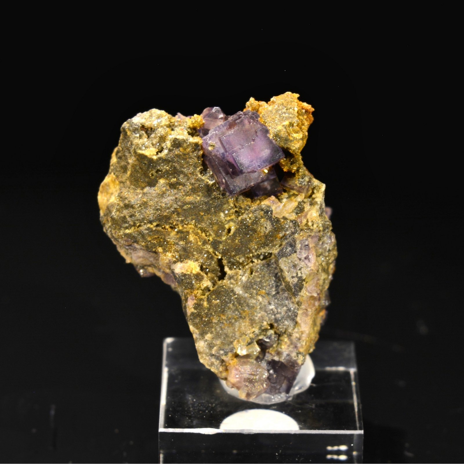 Fluorine violette cubique (plus rare que les fluorines en "pyramide aztèque") d'environ 7 mm, sur matrice de quartzite, provenant de Rancennes dans les Ardennes . Les bordures sont en fait plus foncées que le coeur. Ce secteur a été classé en parc naturel régional en 1999. Cette pièce est issue d'une ancienne découverte restée pendant de nombreuses années chez un prospecteur et collectionneur local.