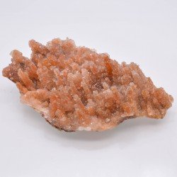 Plaque de petits quartz très brillants cristallisés sur des stalactites de calcédoine orange.