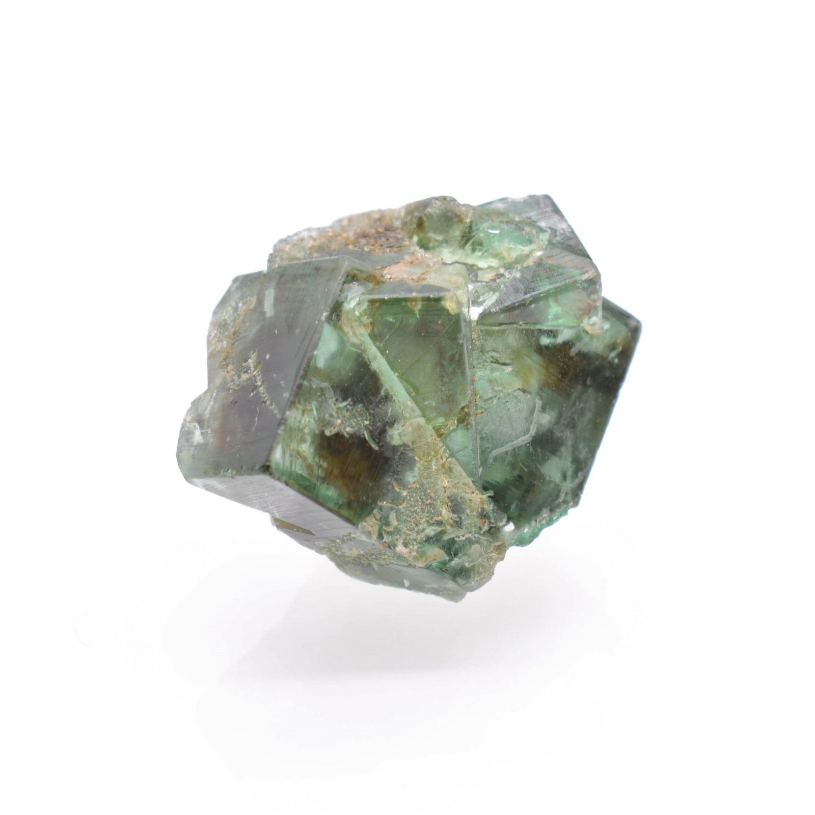Fluorine maclée du gisement classique de Rogerley au Royaume-Uni. La couleur est verte en lumière artificielle, et bleue en lumière naturelle.