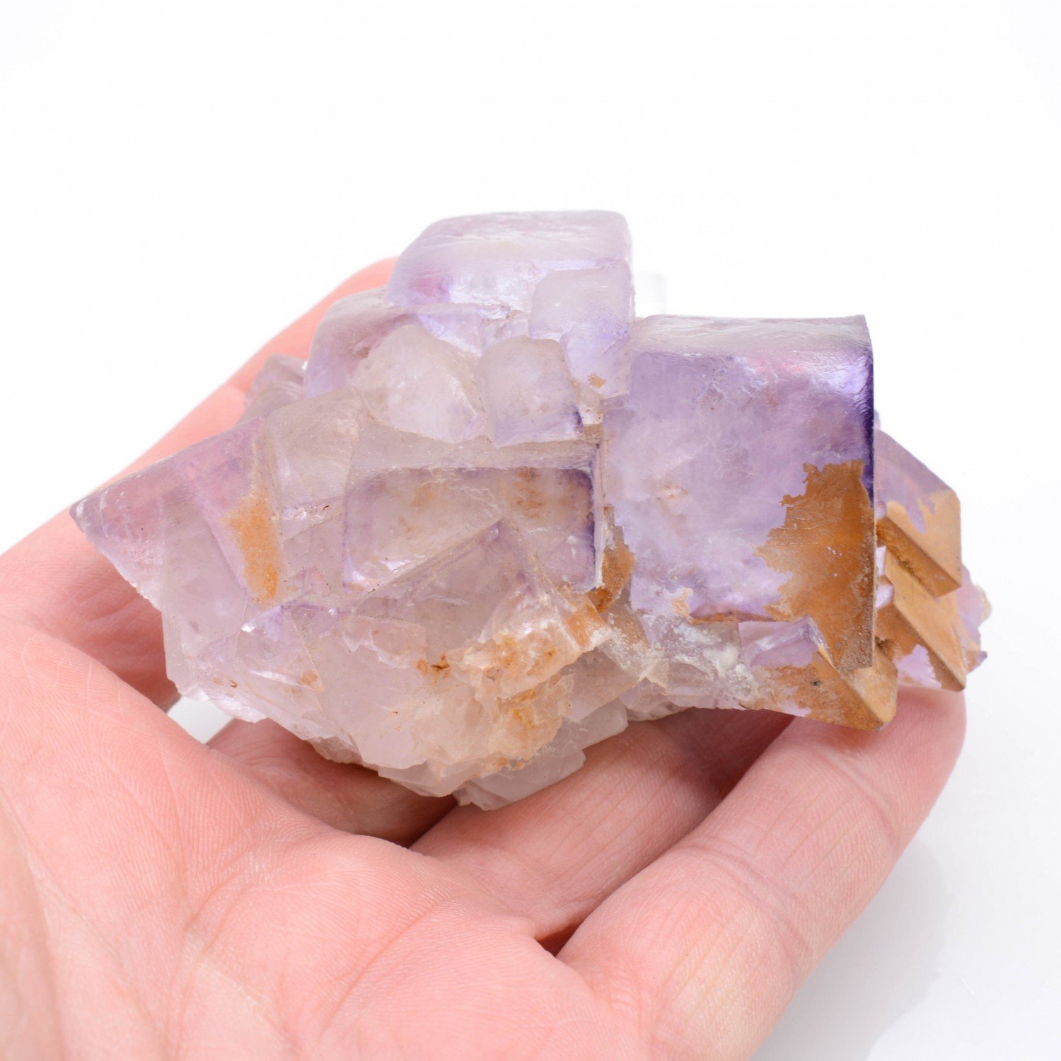 Fluorine de couleur lavande, brillante, présentant de discrètes figures de dissolution sur les faces.