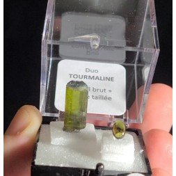 DUO pierre taillée et pierre brute !Tourmaline cristallisée :...